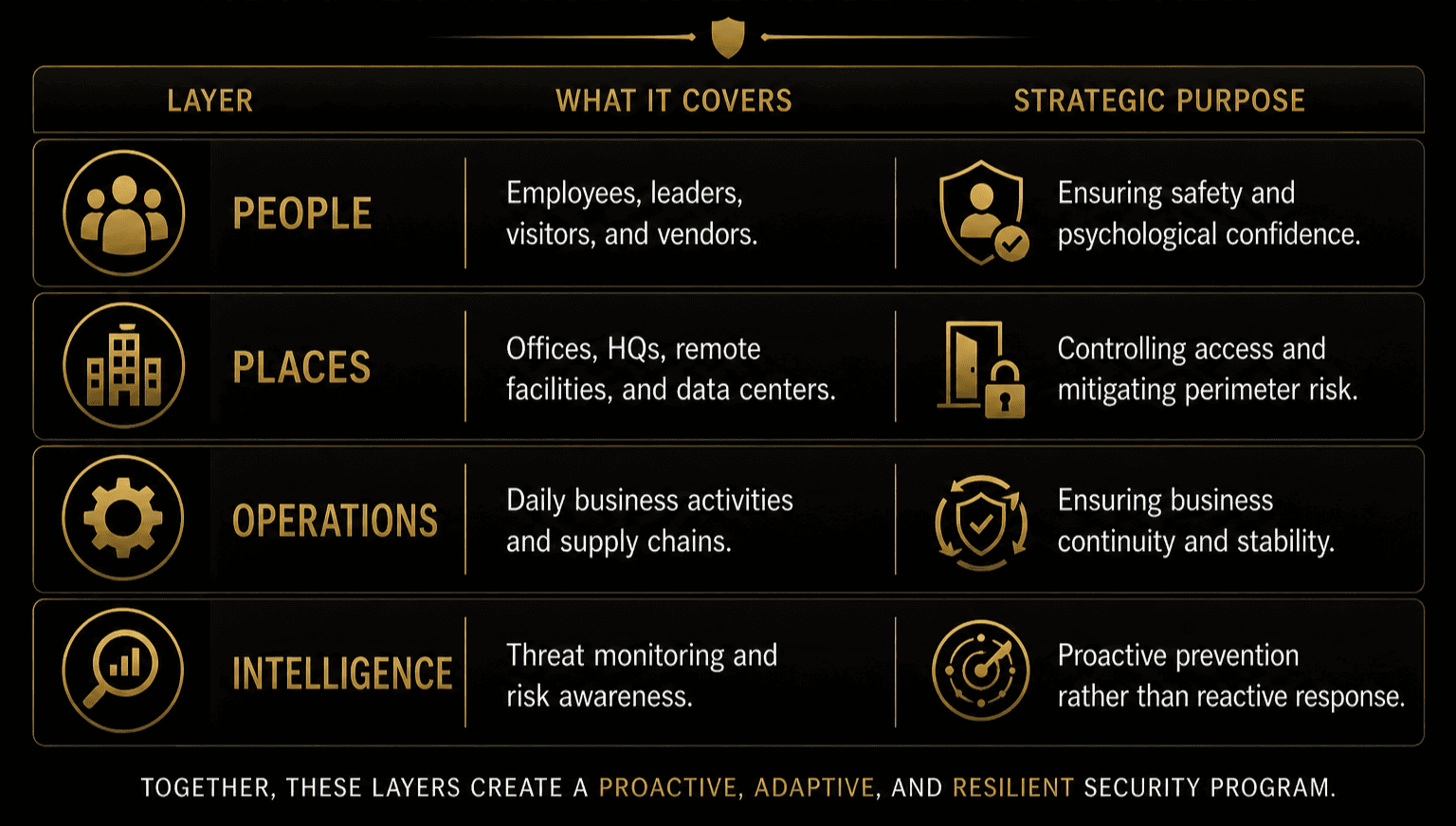 It is better to think of corporate security as a cohesive system rather than a single service. Today, the most effective and long-lasting programs combine physical safety with operational intelligence.